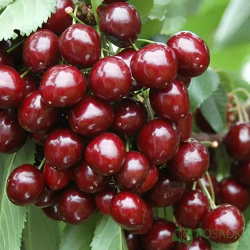Саженцы черешни сорта Канадский Гигант — высокоурожайный сорт, который начинает активно плодоносить уже в первый сезоны. Масса одного плода достигает 20–30 г, а урожайность может составлять до 50 кг с одного дерева.