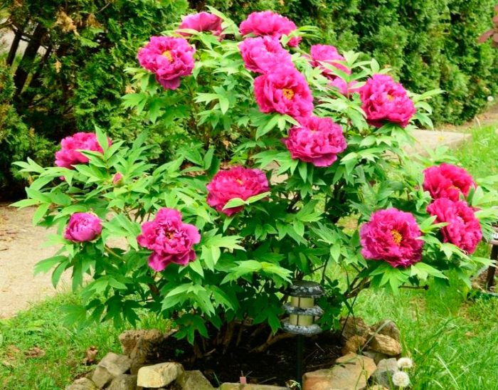 Родиной древовидного пиона, огромные цветки которого превращают куст в роскошный букет, является Китай. Простота в уходе, разнообразие расцветок, пышность цветения способствовали высочайшей популярности этого растения у садоводов.