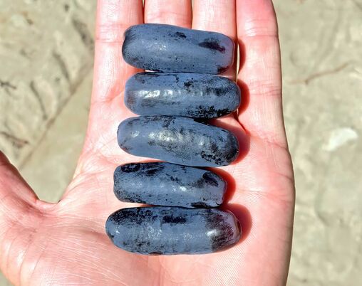 • Ягоды: очень длинные и тонкие, темно-синей окраски, вытянутые, с ямочкой на кончике, размером 20-22 мм х 37-50 мм, весом 7-9 г, при созревании практически чёрные.