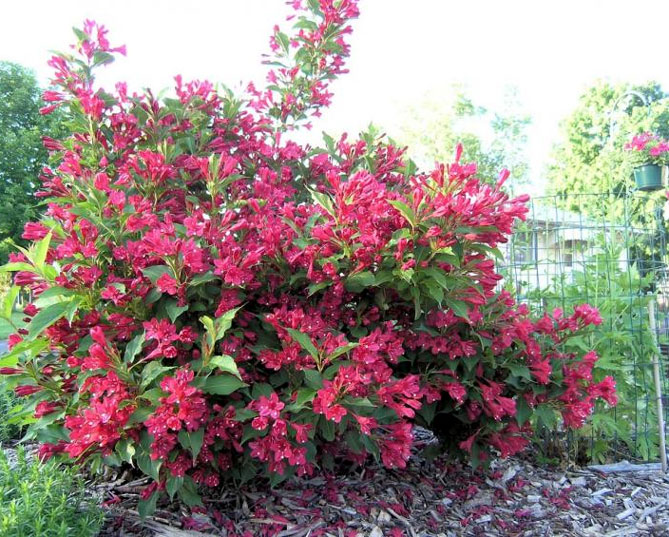 Вейгела Цветущая идеальна для клумбы или живой изгороди